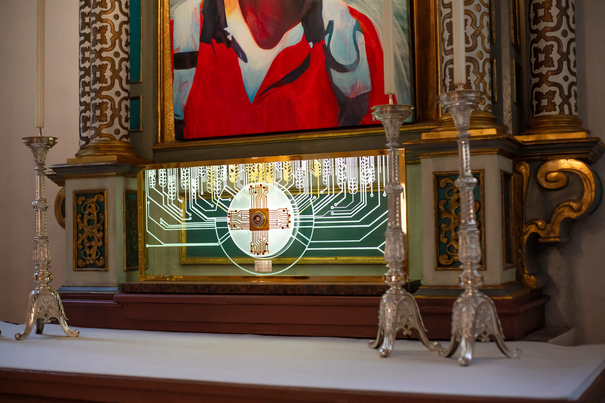 Seit 21. Oktober 2022 befindet sich in der Markuskirche Wolfsberg eine Reliquie von Carlo Acutis – kunstvoll eingearbeitet in ein Reliquiar aus Gold, Rubinen und einem Kreuz.